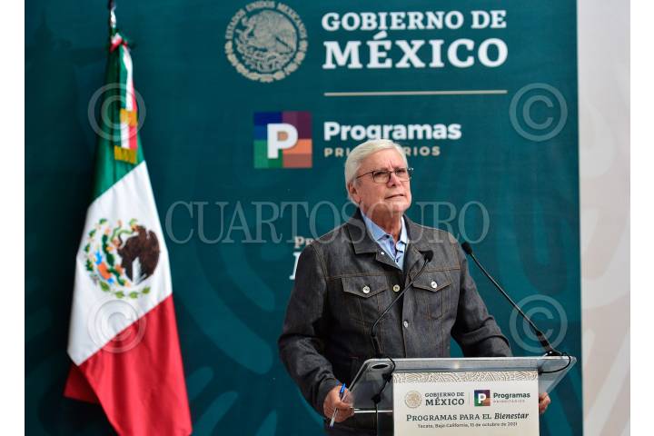 Jaime Bonilla durante la presentación de Programas para el Bienestar en Tecate, Baja California.