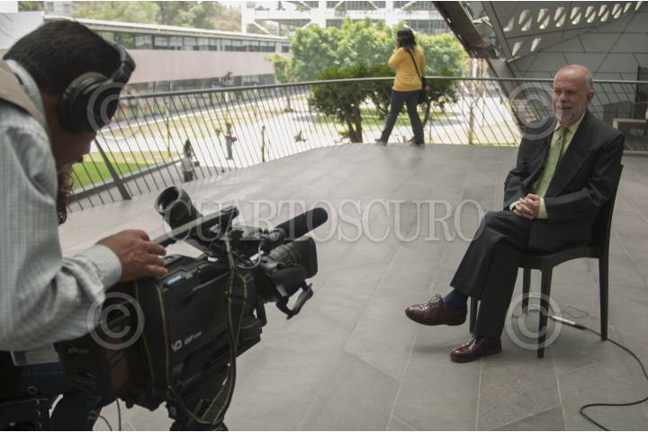 MÉXICO, D.F., 14MAYO2013.- El director del Centro Universitarios de Estudios Cinematográfico, José Felipe Coria, recibió la tarde de hoy en la Sala Julio Bracho del Centro Cultural Universitario al director de cine, Jaime Humberto Hermosillo, el cual fue invitado especial a la entrega de la medalla de la Filmoteca de la UNAM al CUEC por sus 50 años de existencia. FOTO: FRANCISCO RODRÍGUEZ / CUARTOSCURO.COM