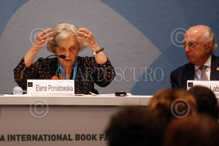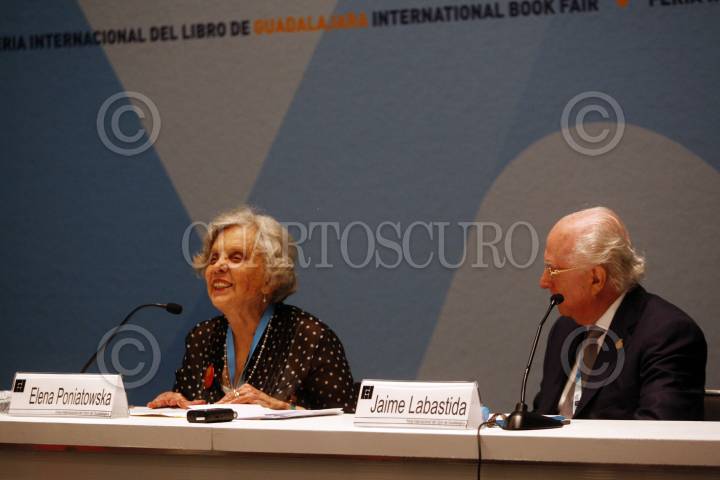 GUADALAJARA, JALISCO, 04DICIEMBRE2014.- Esta tarde en la Expo y en el marco de la edición 28 de la Feria Internacional del Libro de Guadalajara 2014 (FIL), se llevo a cabo un homenaje en el centenario de José Revueltas, dicho homenaje estuvo a cargo de Elena Poniatovska y Jaime Labastida. FOTO: FERNANDO CARRANZA GARCIA / CUARTOSCURO.COM