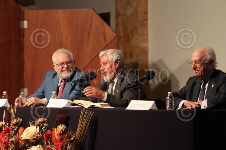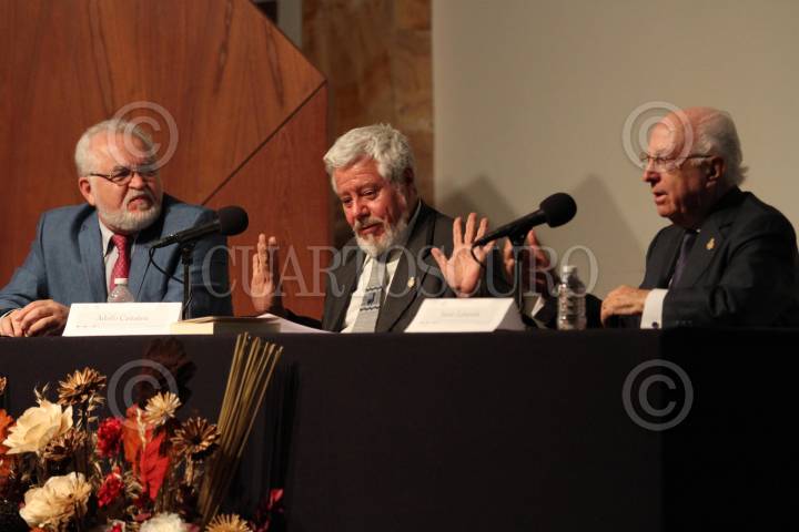 MÉXICO, D.F., 21ABRIL2015.- Los escritores y poetas Eduardo Lagagne, Adolfo Castañon y Jaime Labastida, durante la presentación en la sala Manuel M. Ponce del libro El Amor, el Sueño y la Muerte de Jaime Labastida. FOTO: SAÚL LÓPEZ /CUARTOSCURO.COM