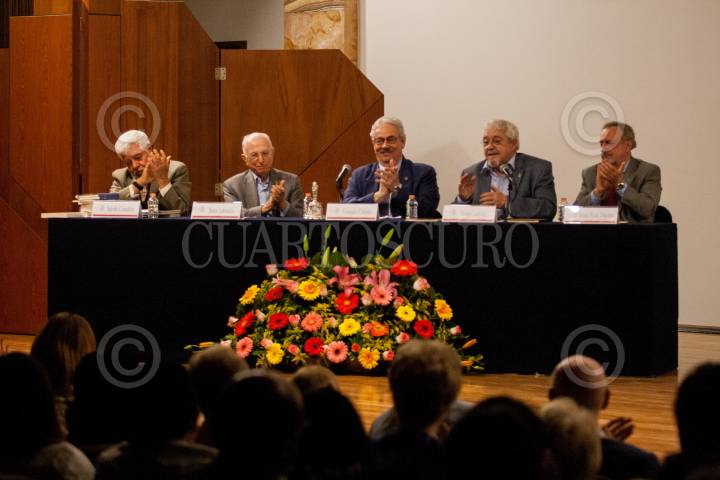 CIUDAD DE MÉXICO, 30AGOSTO2016.- Rafael Guevara, Julieta Fierro, Jaime Labastida y Edgar Krauss presentaron el libro “La ciencia en la historia de México” del escritor y filósofo Eli de Gortari, editado por el Fondo de Cultura Económica. FOTO: MARÍA JOSÉ MARTÍNEZ /CUARTOSCURO.COM