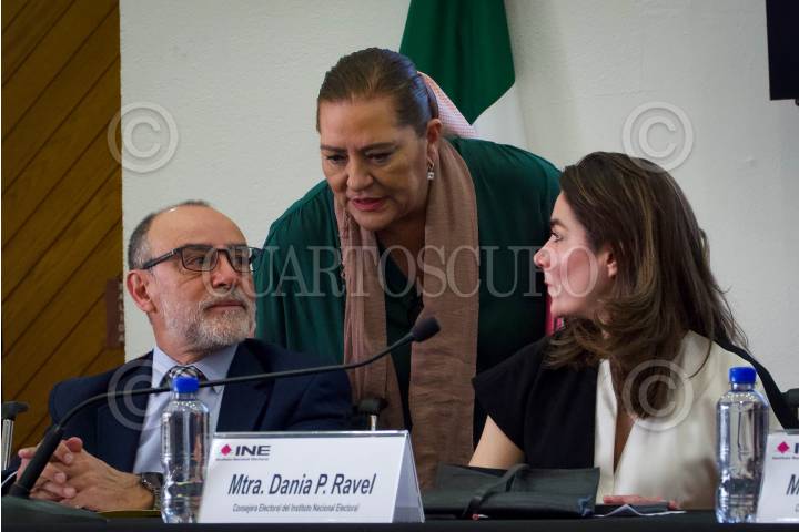 CIUDAD DE MÉXICO, 14MARZO2024.- Guadalupe Taddei Zavala, consejera presidenta del Instituto Nacional Electoral (INE), Dania Paola Ravel, Clauidia Zavala y Jaime rivera, consejeros electorales, encabezaron la sesión extraordinaria del INE en la sede del instituto. FOTOS: ROGELIO MORALES /CUARTOSCURO.COM