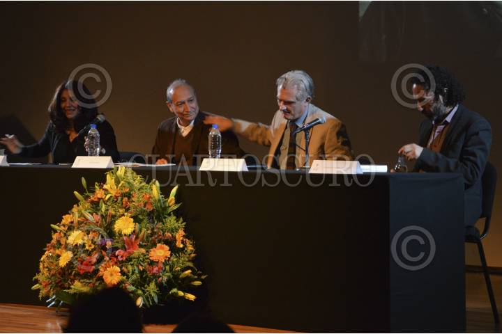CIUDAD DE MÉXICO, 29MARZO2016.- El poeta chiapaneco, Jaime Sabines, fue recordado en la sala Manuel M. Ponce del Palacio de Bellas Artes por su primogénito Julio Sabines; la escritora, Pilar Jiménez; Claudio Isaac, cineasta mexicano y Fernando Rivera, músico, esto a 90 años del nacimiento del escritor y 17 de su muerte. Su hijo recordó a su padre con algunos versos que él les recitaba cuando eran más chicos. FOTO: GALO CAÑAS /CUARTOSCURO.COM