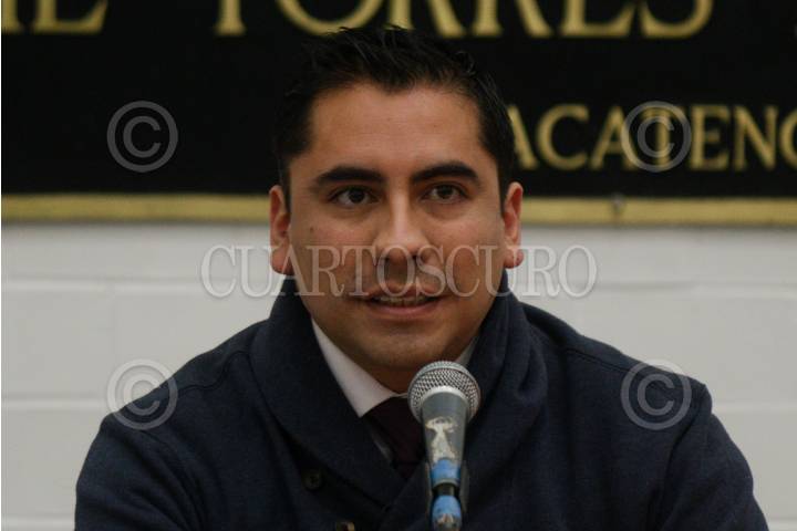 Omar Matamoros Hernández, director de Difusión Cultural del IPN, durante conferencia del anuncio de la tercera edición del Festival Cultural “Juan García Esquivel” y de la exposición fotográfica “Innovaciones y descubrimientos de Israel para el mundo” en el centro cultural "Jaime Torres Bodet”.