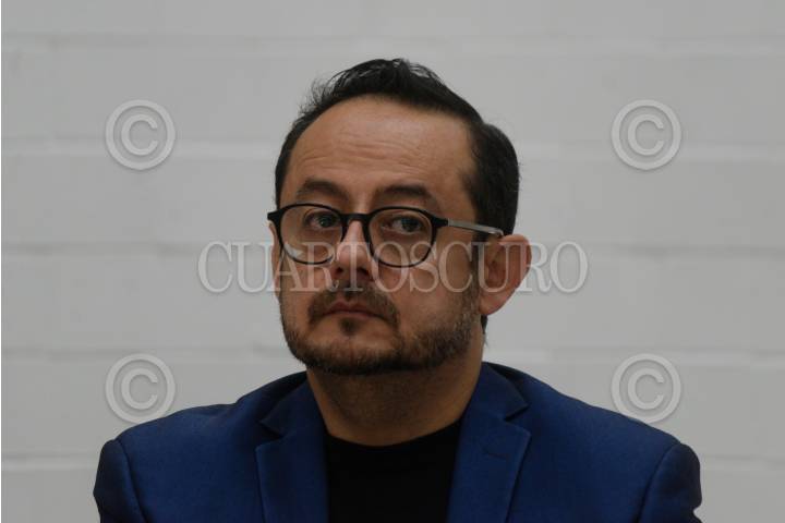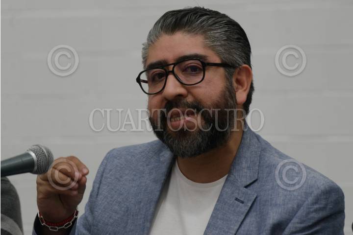 César Piña, director de escena, durante conferencia del anuncio de la tercera edición del Festival Cultural “Juan García Esquivel” y de la exposición fotográfica “Innovaciones y descubrimientos de Israel para el mundo” en el centro cultural "Jaime Torres Bodet”.