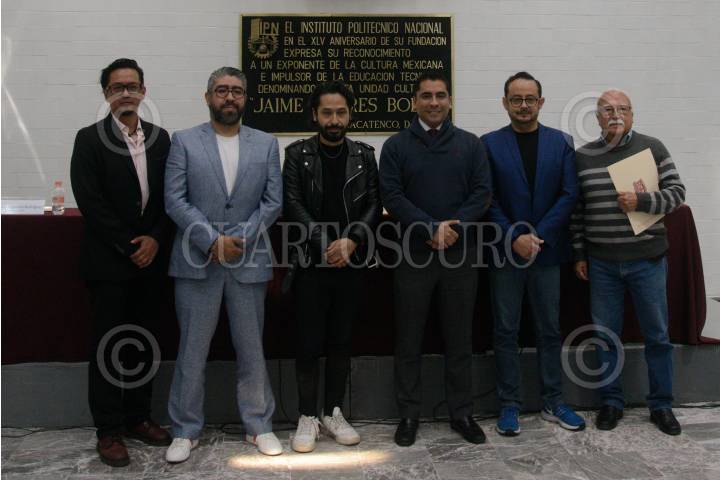 Arturo Figueroa, director dela División de Difusión; Germán López Tirado, jefe de la la División de Fomento y Promoción Cultural; Héctor Báez Médina, académico del Centro de Investigación en Computación; Omar Matamoros Hernández, director de Difusión Cultural del IPN; Luis Israel Martínez, integrante de Sonido Gallo Negro, y César Piña, director de escena, encabezaron conferencia del anuncio de la tercera edición del Festival Cultural “Juan García Esquivel” y de la exposición fotográfica “Innovaciones y descubrimientos de Israel para el mundo” en el centro cultural "Jaime Torres Bodet”.