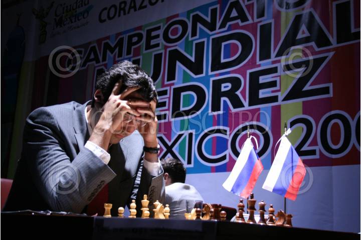 MÉXICO. D.F. 13SEPTIEMBRE2007.-Vladimir Kramnik en el Torneo Mundial de Ajedrez que se celebra en la ciudad de México, donde cada jugador planeara su estrategia para dejar en Jake a su oponente, ademas el certamen ofrece un torneo para los habitantes de la ciudad . FOTO:RICARDO CASTELAN/CUARTOSCURO.COM