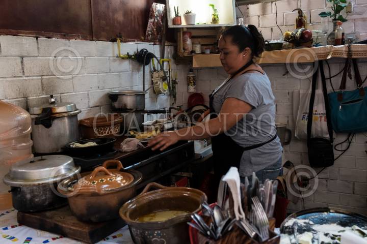CIUDAD DE MÉXICO, 28MAYO2018.- Una mujer cocina en su local dentro de un mercado en Jalalpa el Grande en la delegación Álvaro Obregón. En el lapso del 2018, la organización Internacional del trabajo (OIT) estimó una participación femenina en el mercado laboral del 48.5%. FOTO: ANDREA MURCIA /CUARTOSCURO.COM