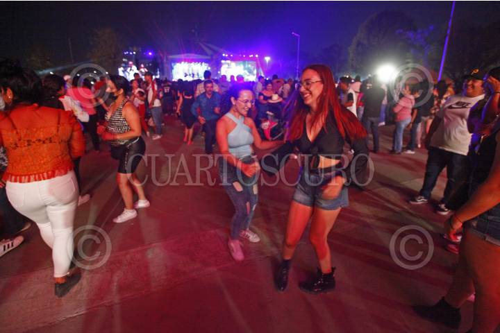 Asistentes al concierto de “Los Ángeles Azules”, bailan sus canciones.