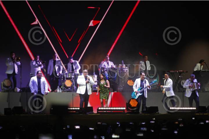 La agrupación mexicana de cumbias “Los Ángeles Azules” durante su presentación en el antes Parque de la Solidaridad ahora el Parque Luis Quintanar.
