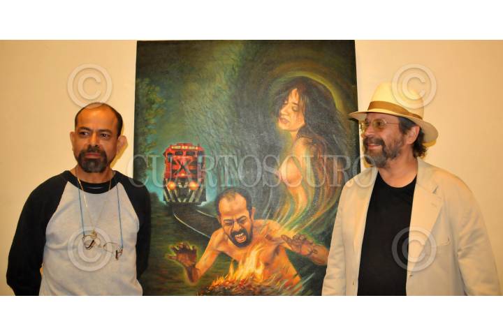 CHAPALA, JALISCO 01 FEBRERO 2009.- Se inauguró el dia de ayer la exposición pictorica del artista autodidacta Rodolfo Perez Garcia Lohbo, en el Centro Cultural Gonzalez Gallo de Chapala, en la imagen posa junto con Francisco Barreda, director de Artes Visuales del gobierno de Jalisco. FOTO: MARIA DI PAOLA BLUM/CUARTOSCURO.COM