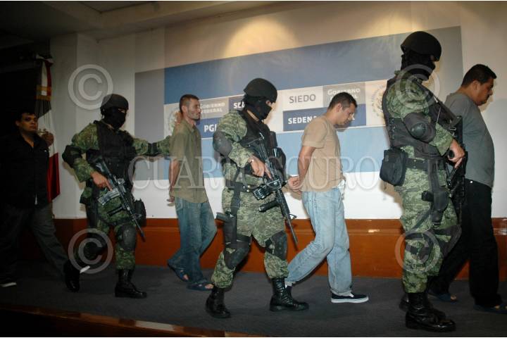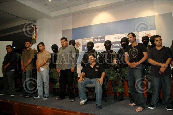 MÉXICO, D.F., 30OCTUBRE2009.- Oscar Orlando Nava Valencia "El Lobo" lider de la organización delictiva "Los Valencia" y nueve integrantes de esta estructura criminal fueron presentados esta noche en la Subprocuraduria Investigación Especializada en Delincuencia Organizada (SIEDO) despues de ser detenidos tras un enfrentamiento en la ciudad de Guadalajara, Jalisco. FOTO: RODOLFO ANGULO/CUARTOSCURO.COM