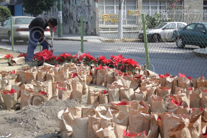 MÉXICO D.F., 12DICIEMBRE2009.- Trabajadores del Gobierno del Distrito Federal colocan noche buenas en algunas avenidas de la ciudad de México FOTO: SÁSHENKA GUTIÉRREZ/CUARTOSCURO.COM