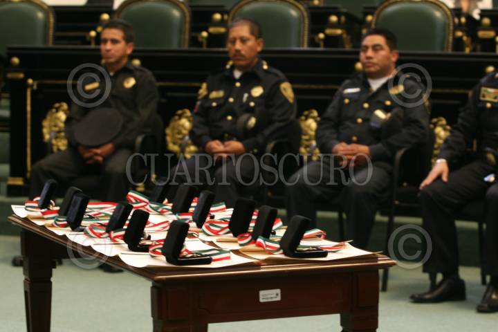 MÉXICO D.F. 20DICIEMBRE2007.-Se entrego la condecoración al Merito Policial que se otorga a los elementos más destacados en la Asamblea Legislativa del Distrito Federal.En la imagenoficialaes de la SSP durante la ceremonia. FOTO: GUILLERMO PEREA/CUARTOSCURO.COM