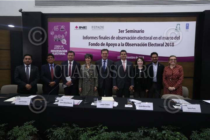 CIUDAD DE MÉXICO, 22NOVIEMBRE2018.- Janine Ótalora Malassis, presidenta del Tribunal Electoral del Poder Judicial de la Federación (TEPJF); Lorenzo Córdova Vianello, consejero presidente del INE, y Héctor Díaz, titular de la Fepade, participaron en el "Seminario de Informes Finales de Observación Electoral, Fondo de Apoyo a la Observación Electoral celebrado el día de hoy 22 de noviembre de 2018" en las instalaciones del INE FOTO: INE /CUARTOSCURO.COM
