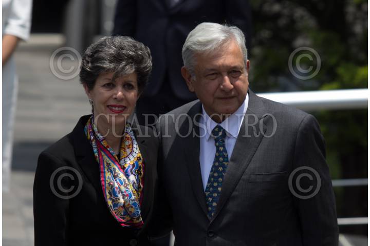 CIUDAD DE MÉXICO, 08AGOSTO2018.- Janine Madeline Otálora, presidenta de la sala superior del Tribunal Electoral del Poder Judicial de la Federación (TEPJF), y Andrés Manuel López Obrador, virtual presidente electo, durante la llegada a las inmediaciones del TEPJFpara entregar la constancia de mayoría que lo acredita como presidente electo de la República. FOTO: GALO CAÑAS /CUARTOSCURO.COM