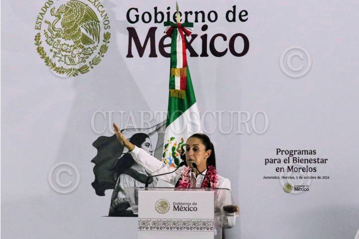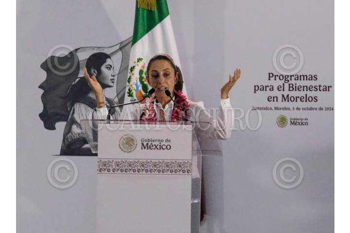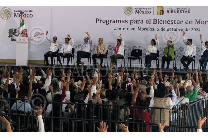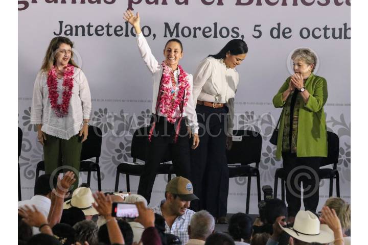 JANTETELCO, MORELOS, 05OCTUBRE2024.- Claudia Sheinbaum Pardo, Presidenta de México, inicio su gira por el interior del país en este municipio, dónde presento los programas sociales que darán rostro a su gobierno. Estuvo acompañada de la gobernadora Margarita González Saravia y Secretarios de Estado. MARGARITO PÉREZ RETANA/CUARTOSCURO.COM
