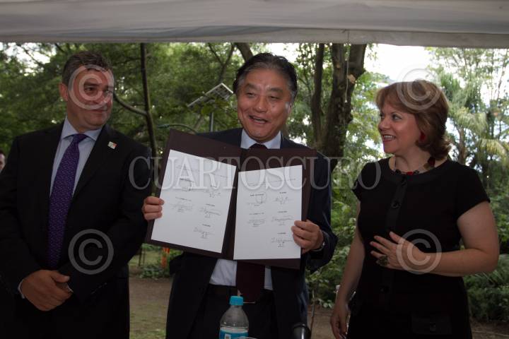 MÉXICO D.F., 07AGOSTO2012.- Martha Delgado, titular de la Secretaria del Medio Ambiente, acompañado de Takashi Kawamura, alcalde de la Ciudad de Nagoya, Japón, inauguraron el Jardín Japonés y firmaron el Memorándum de entendimiento entre el Zoológico de Higashiyama y el Zoológico de Chapultepec. FOTO: GUILLERMO PEREA /CUARTOSCURO.COM