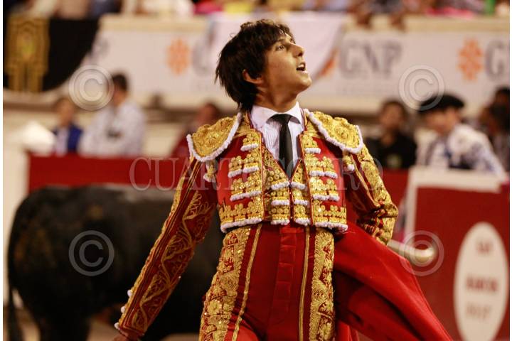 AGUASCALIENTES, AGUASCALIENTES, 24ABRIL2017.- El día de ayer se llevó a cabo la Cuarta Corrida del Gran Serial Taurino San Marcos 2017, en la cual se lidiaron seis toros de Jaral de Peñas. Durante la misma, el torero peruano Andrés Roca Rey cortó dos orejas. FOTO: GABINO ACEVEDO /CUARTOSCURO.COM