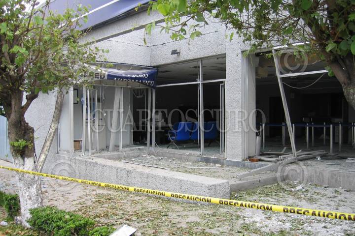 JUITEPEC, MORELOS23 MAYO 2004.- Se detonó material explosivo en tres sucursales bancarias del Estado. En una de las detonaciones se encontró un comunicado donde el Comando Jaramillista Morelense 23 de Mayo se adjudica la responsabilidad de los hechos. FOTO:Berenice Álvarez/LA UNION DE MORELOS.