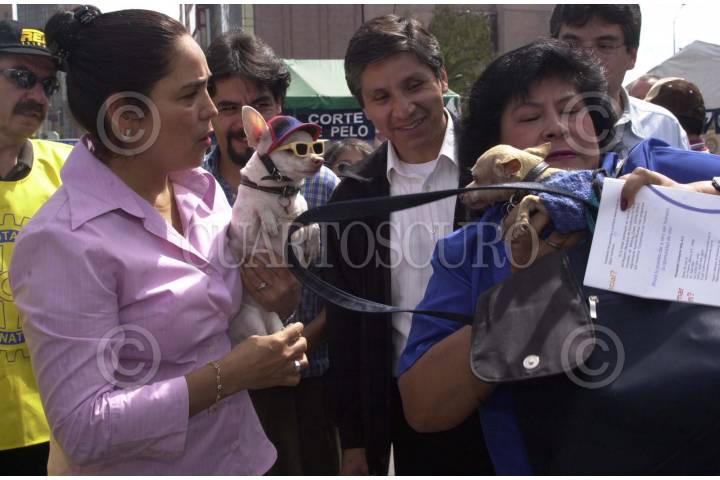 México, D.F. 22 FEBRERO 2004.- Virginia Jaramillo, jefa delegacional de Cuauhtémoc, se detiene durante el recorrido por los estantes de la jornada de salud, para saludar a estos chihuahueños, y verificar que se les hubieran aplicados las vacunas correspondientes. FOTO: Sandra Perdomo/CUARTOSCURO.COM