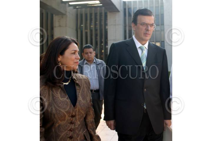 MEXICO, D.F. 08JULIO2005.- Virginia Jaramillo, delegada de Cuauhtemoc y Marcelo Ebrard, secreatario de Desarrollo Social del D. F. se dirigen a la explanadade dicha demarcación, donde entregaron resultados de mantografias. FOTO: Nelly Salas/CUARTOSCURO.COM
