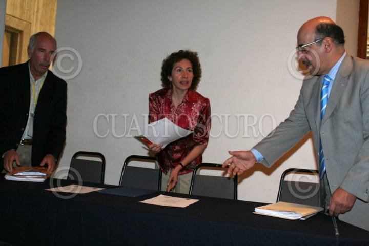 MÈXICO, D.F. 26FEBRERO2007.- Gloria Patricia Miranda Romero, titular de la Red Nacional Altexto de la ANUIES ofreciò una conferencia de prensa en la Feria Internacional del Libro. Gerardo Jaramillo Herrera, director de publicaciones y fomento editorial de la UNAM y Francisco Gómez Ruiz, director de publicaciones de El Colegio de Mèxico. FOTO: PAOLA HIDALGO/CUARTOSCURO.COM