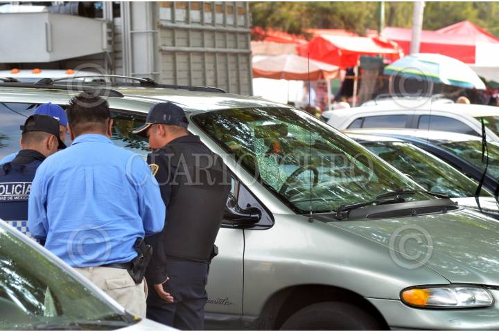 CIUDAD DE MÉXICO, 10ABRIL2017.- Aspectos del lugar donde fue asesinado un hombre por impactos de bala dentro de su camioneta, en la calle de Luis de la Rosa y Fernando Iglesias Calderón, en la colonia Jardín Balbuena. Presuntamente el hombre era el líder de los comerciantes ambulantes de la zona. FOTO: ARMANDO MONROY /CUARTOSCURO.COM