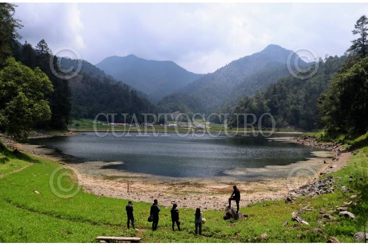 Turistas se toman una foto en la laguna Quila, la mayor del Parque Nacional Lagunas de Zempoala