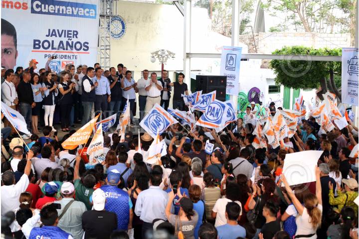 CUERNAVACA, MORELOS, 14MAYO2018.- Este día iniciaron las campañas electorales para presidencias municipales y renovación del congreso local. En la imagen, Javier Bolaños, candidato a la alcaldía de la capital por los partidos Acción Nacional y Movimiento Ciudadano, en su mitin de inicio en la colonia Lagunilla. El panista estuvo acompañado por Víctor Caballero, candidato a gobernador. FOTO: MARGARITO PÉREZ RETANA /CUARTOSCURO.COM