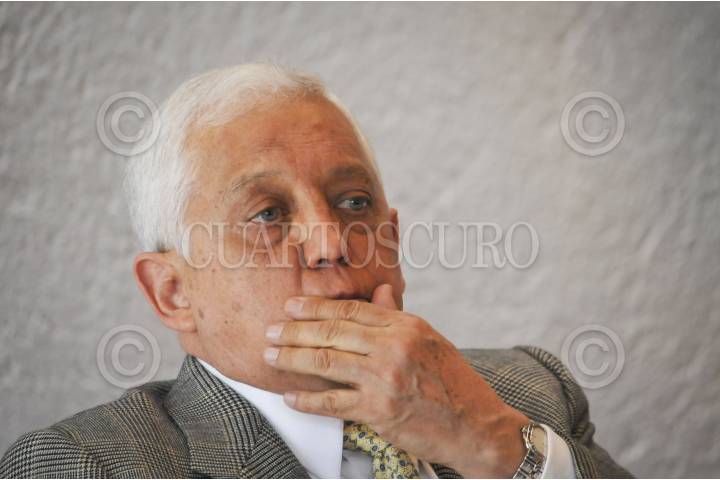 MÉXICO, D.F., 04OCTUBRE2013.- Eduardo Moreno Laparade, sobrino del actor Mario Moreno “Cantinflas”, durante la conferencia de prensa en un hotel de Polanco que ofreció en compañía de sus abogados Zeferino Ramírez Ruiz y Javier Coello Trejo en la que hablaron del reconocimiento de Moreno Laparade sobre la titularidad y propiedad de los derechos derivados de las 39 películas estelarizadas por "Cantinflas" y su derecho para cobrar las regalías. FOTO: DIEGO SIMÓN SÁNCHEZ /CUARTOSCURO.COM