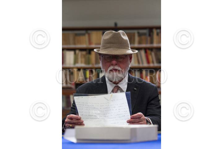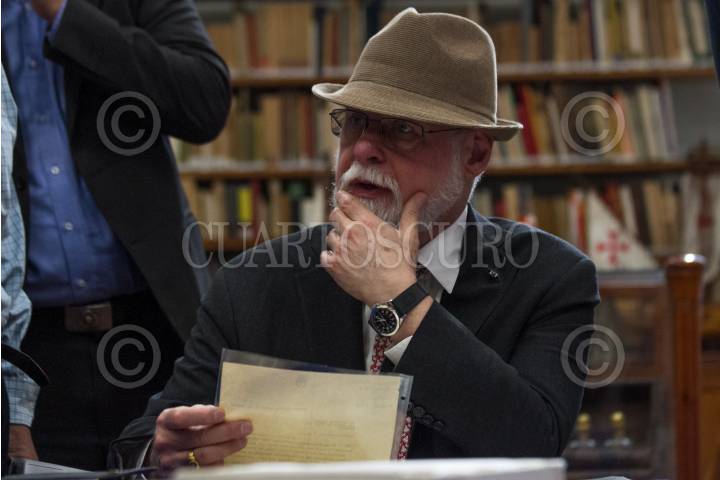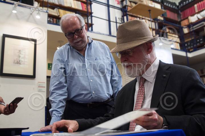 CIUDAD DE MÉXICO, 25NOVIEMBRE2017.- El escritor argentino Alberto Manguel (1948) ganador del Premio Internacional Alfonso Reyes 2017 recorrió la Capilla Alfosina, que guarda cientos de documentos, escritor, libros y objetos personales del escritor Alfonso Reyes, en una breve visita el historiador Javier García Diego, quien es director del recinto le mostró los tesoros que alberga. FOTO: MOISÉS PABLO /CUARTOSCURO.COM