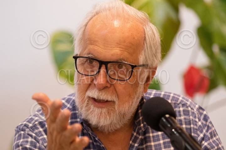 CIUDAD DE MÉXICO, 03JUNIO2019.- El historiador, investigador y académico Javier García Diego durante la conferencia de prensa en la que se presentó el Homenaje Nacional e Internacional que se realizará al filósofo e historiador Miguel León Portilla, quién se encuentra hospitalizado. Se realizó en el Museo de Antropología e Historia. FOTO: GRACIELA LÓPEZ /CUARTOSCURO.COM