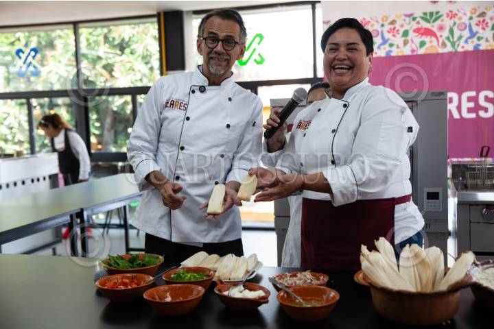 CIUDAD DE MÉXICO, 27ENERO2024.- Javier Hidalgo Coordinador General del Subsistema de Educación Comunitaria PILARES y Claudia Rodríguez, Directora de Autonomía Económica y Saberes de PILARES encabezaron el arranque de la Mega tamaliza por el sexto aniversario de PILARES, donde se plantea preparar 20 mil tamales. La actividad se lleva a cabo en todos los pilares siendo la base la de “Magdalena de las Salinas”. FOTO: ANDREA MURCIA /CUARTOSCURO.COM