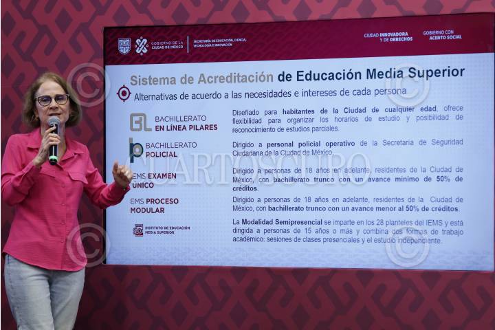 CIUDAD DE MÉXICO, 16JUNIO2024.- Jesús Ofelia Angulo Guerrero, Secretaria de Educación, Ciencia, Tecnología e Innovación, durante la presentación del programa "Termina tu Prepa" en uno de los 298 Pilares. Este programa calcula que podrían acabar su educación media superior alrededor de 150 mil personas de 15 años en adelante. FOTO: GOBIERNO DE LA CIUDAD DE MÉXICO/CUARTOSCURO.COM