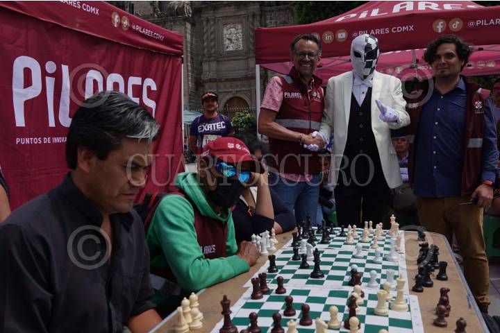 CIUDAD DE MÉXICO, 14JULIO2024.- Javier Hidalgo, coordinador General de Sistemas de Educación Comunitaria PILARES, durante el Torneo Monumental de Ajedrez realizado en la plancha del Zócalo. FOTO: GRACIELA LÓPEZ /CUARTOSCURO.COM