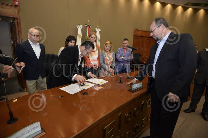 TOLUCA, ESTADO DE MÉXICO, 26MARZO2017.- El dirigente estatal del PRD, Omar Ortega Álvarez y Javier Rivera, representante ante el IEEM, entregaron la plataforma electoral a los integrantes de este instituto, para las elección de gobernador del Estado de México. FOTO: ARTEMIO GUERRA BAZ / CUARTOSCURO.COM