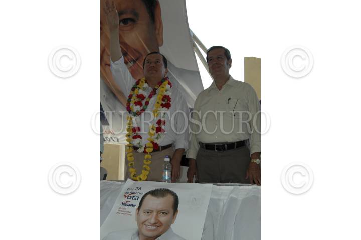 TECPAN DE GALEANA, GUERRERO, 16ENERO2013.- El candidato de unidad a la rectoría de la Máxima Casa de Estudios de la Universidad Autónoma de Guerrero (UAG), Javier Saldaña Almazán acompañado del ex candidato a la rectoria Rogelio Ortega Martínez, durante su gira de proselitismo en las Unidades Académicas de la Costa Grande de Guerrero; donde negó que el movimiento ciudadano afecte las clases en las diferentes Unidades Académicas de la Costa Chica. FOTO: CUARTOSCURO.COM