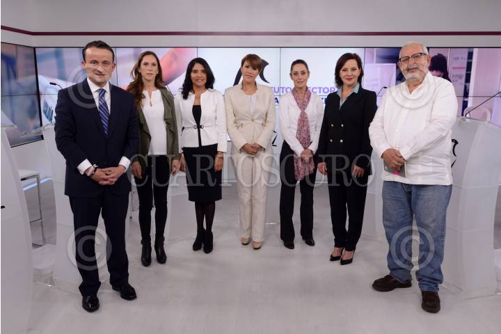 CIUDAD DE MÉXICO, 18ABRIL2018.- Mikel Arriola, candidato a la gubernatura de la Ciudad de México por el PRI; Mariana Boy, candidata a la gubernatura por el Partido Verde; Alejandra Barrales, candidata por la coalición “Por la CDMX al Frente”; Lorena Osorio Elizondo, candidata independiente; Claudia Sheinbaum, candidata por la coalición “Juntos Haremos Historia”; Purificación Carpinteyro, candidata por el partido Nueva Alianza, y Marco Raszón, candidato por el Partido Humanista, previo al inicio del primer debate por la gubernatura de la capital. FOTO: CUARTOSCURO.COM