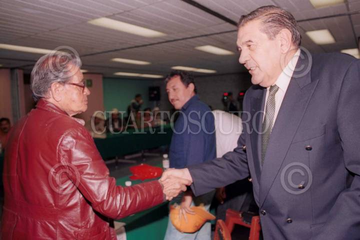 Guillermo Ortíz Martinez, Presidente del Banco de México, Javier Márquez Diez Canado, vicepresidente de Desarrollo profecional, a su llegada al Centro de Exposiciones Banamex para dar início a la inaguración del Simposium IMEF 2003. FOTO: Sandra Perdomo/CUARTOSCURO.COM