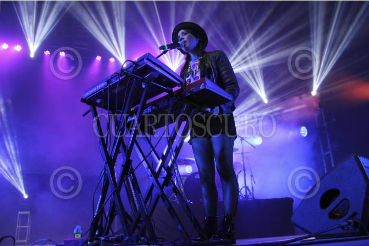 MÉXICO, D.F., 22AGOSTO2015.- La banda regia Quiero Club cerro el concierto gratuito del viernes en el Zócalo en el marco de la Semana de las Juventudes organizada por el IMJUVE. En la fotografía la tecladista Marcela Viejo. FOTO: GALO CAÑAS /CUARTOSCURO.COM