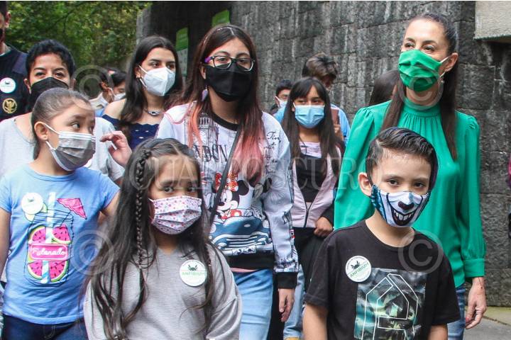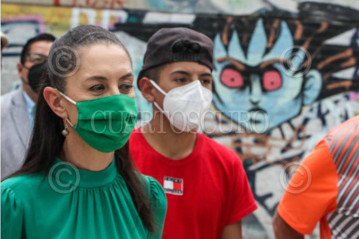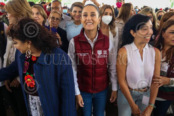 Claudia Sheinbaum Pardo jefa del Gobierno de la Ciudad, acompañada de Nuria Fernández y Clara Brugada en el evento Barrio adentro en Iztapalapa.