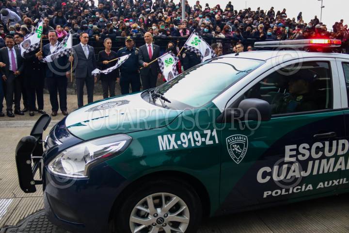 Entrega de patrullas a policías de la alcaldía de Cuajimalpa por parte del Gobierno de la Ciudad, en la zona comercial más importante de América Latina.