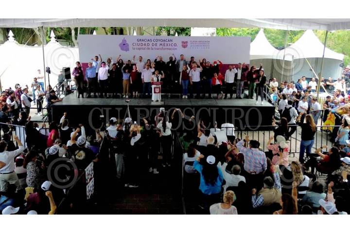 CIUDAD DE MÉXICO, 17AGOSTO2024.- Clara Brugada, jefa de Gobierno electa, encabezó asamblea informativa en el Jardín Hidalgo en Coyoacán. FOTO: PRENSA CLARA BRUGADA/CUARTOSCURO.COM