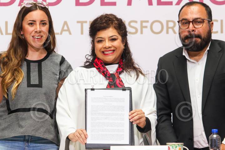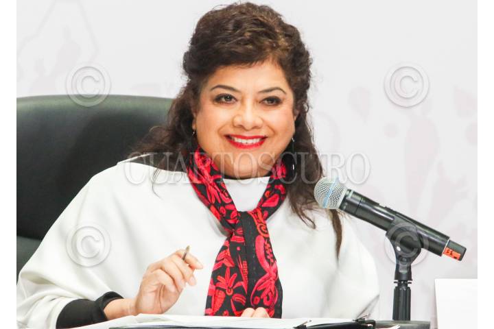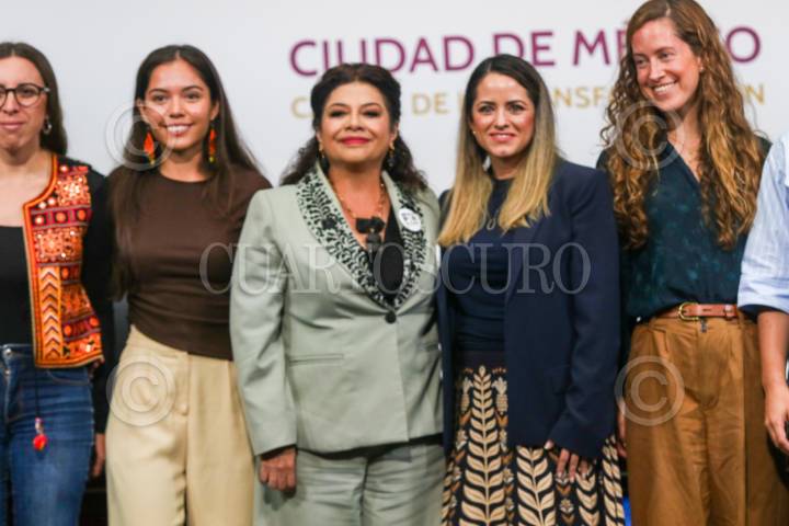 CIUDAD DE MÉXICO. 04SEPTIEMBRE2025.- Clara Brugada Molina, jefa del gobierno de la Ciudad; en reunión con mujeres ambientalistas dentro del programa México por el clima, en el antigüo palacio del Ayuntamiento. FOTO: VICTORIA VALTIERRA/CUARTOSCURO.COM