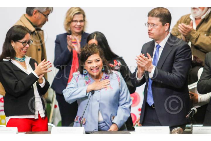 CIUDAD DE MÉXICO. 21NOVIEMBRE2024.- La jefa del Gobierno de la Ciudad, Clara Brugada Molina, encabezó en el patio central del Palacio del Ayuntamiento la creación de la agencia de gestión integral de residuos. FOTO: VICTORIA VALTIERRA/CUARTOSCURO.COM