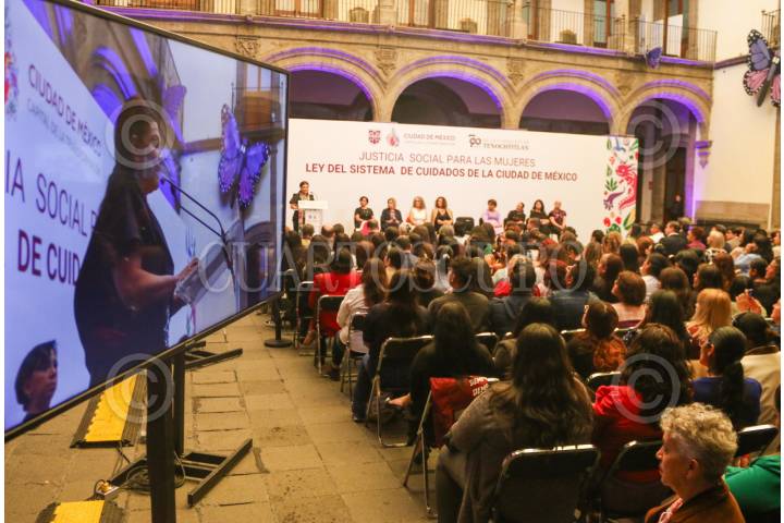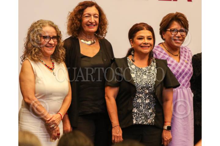 CIUDAD DE MÉXICO, 11 DE AGOSTO DE 2025.- Clara Brugada Molina, jefa del gobierno de la ciudad; Esthela Damián Peralta, subsecretaria de Prevención de las Violencias de la Secretaría de Seguridad y Protección Ciudadana; Ana Falu, directora ejecutiva de CISCSA; y Martha Ávila Ventura, diputada del Congreso de la Ciudad de México, durante el evento "Justicia social para las mujeres, ley del sistema público de cuidados para la ciudad". FOTO: VICTORIA VALTIERRA / CUARTOSCURO.COM