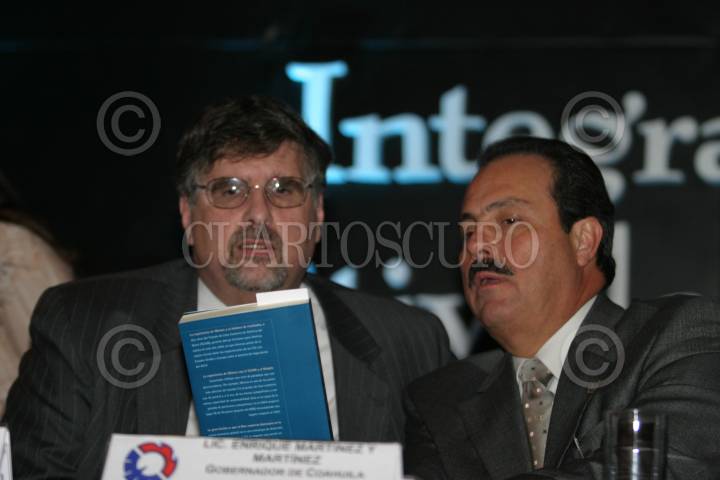 MEXICO, D.F. 02DICIEMBRE2004.- Jeffrey Davidow, ex embajador de Estados Unidos en México y Enrique Martínez y Martínez, gobernador de Coahuila durante el Congreso Internacional Canacintra 2004. FOTO: Nely Salas/CUARTOSCURO.COM