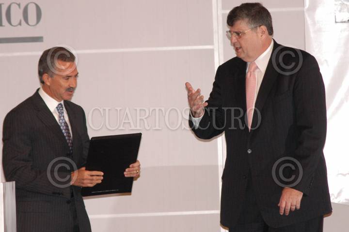 MEXICO, D.F. 29NOVIEMBRE2005.- Roberto Madrazo, candidato del PRI a la presidencia de la República y Jeffrey Davidow es embajador de EUA en México durante la convencion anual de la American Chamber. FOTO:Miriam Sánchez/CUARTOSCURO.COM