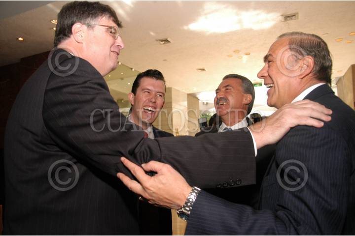 MEXICO, D.F. 29NOVIEMBRE2005.- Jeffrey Davidow, ex embajador de EUA; Larry Rubin, Presidente de American Chamber en México; Roberto Madrazo, candidato del PRI a la presidencia de la República y Jose Angel Gurría durante la convencion anual de la American Chamber. FOTO:Miriam Sánchez/CUARTOSCURO.COM